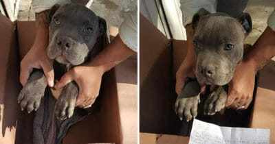 Misshandlad valp kommer till djurhemmet med brev från ett barn – sorgliga orden krossar mitt hjärta
