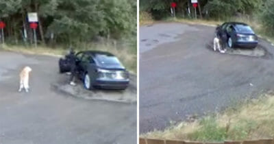 En Teslaförare fångas på övervakningskamera när hon dumpar sin 13-åriga, dementa hund i parken. Trots det kommer hon inte att få något straff. Kvinnan fångades på en övervakningskamera i området Vancouver Park, i Portland, Oregon ...