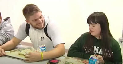 Ingen vill sitta med funktionsvarierad flicka – då börjar fotbollskillen luncha med henne och bryter mönstret