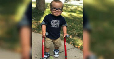 Läkarna sa att pojken aldrig skulle kunna gå – men titta nu när han tar sina första steg!