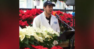 Affärsbiträdet testar gallerians mick – får julshoppare att frysa till is med första tonen