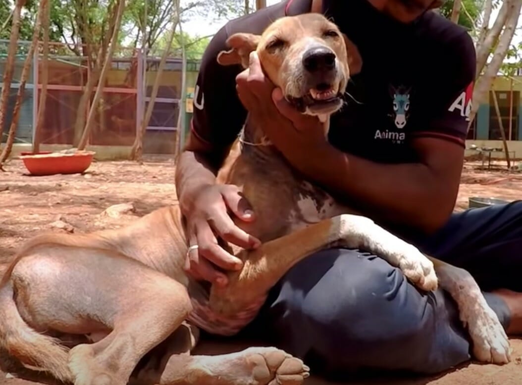 Det var när djurhemmet Animal Aid Unlimited kom till platsen som de insåg hur illa ställt det var med den här stackars hunden.