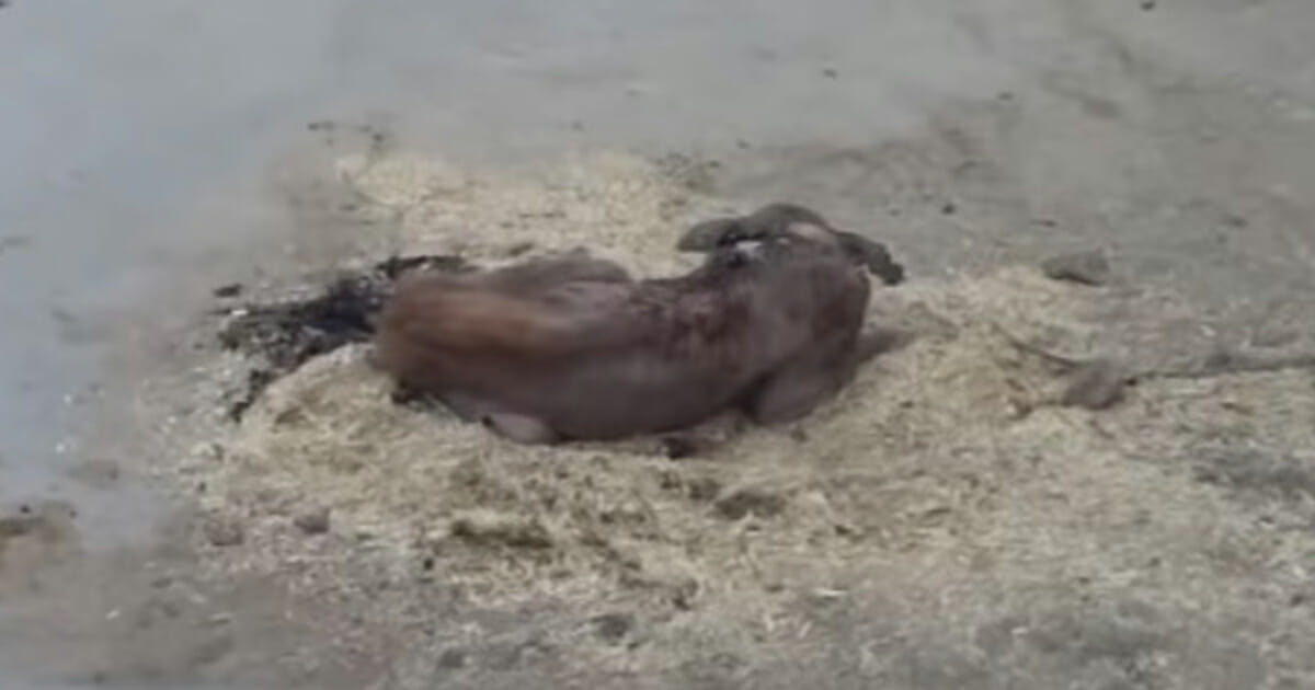 Vittnen kunde se hur den herrelösa hunden slagit sig ner i en liten, tunn hög bestående av hö mitt på gatan. Det var som om han bara ville ha det lite skönt för en gångs skull.