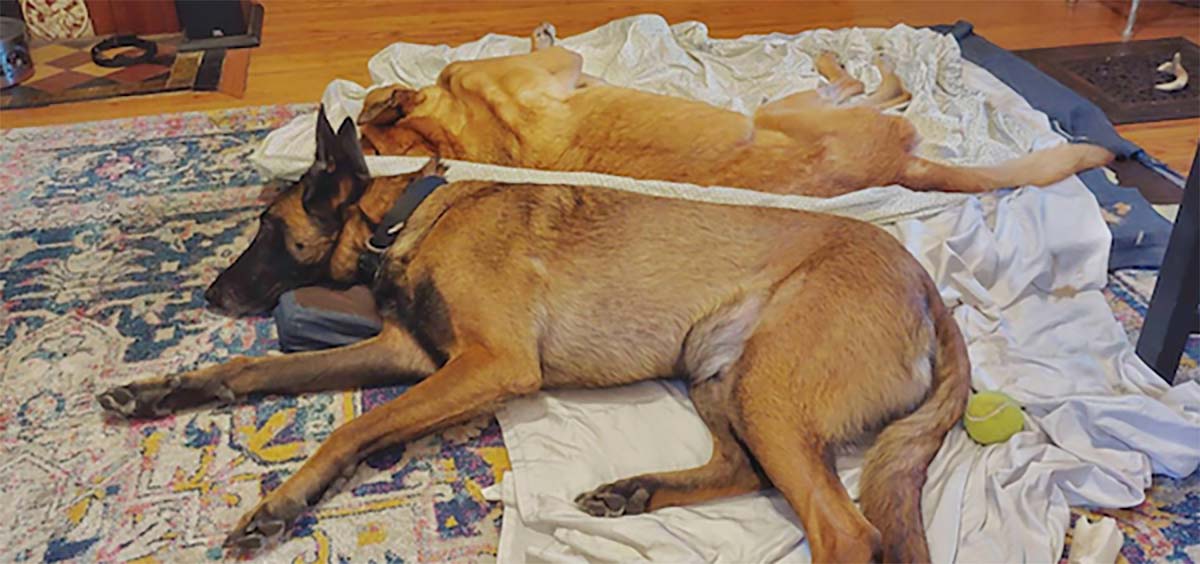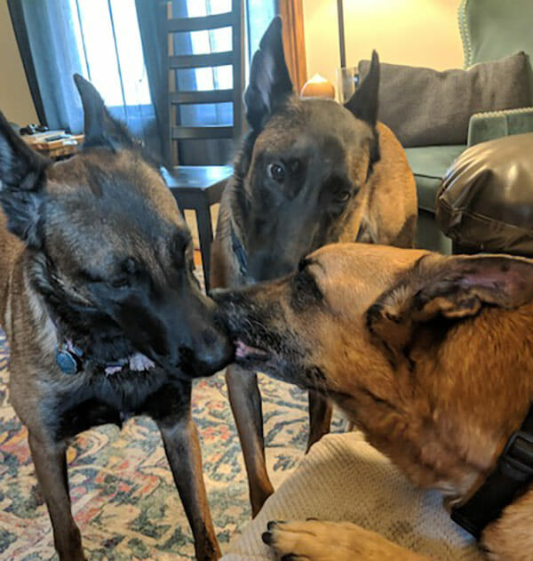 Till inlägget delade han också en hjärtskärande bild på de tre belgiska vallhundarna som sa farväl av varandra för allra sista gången.