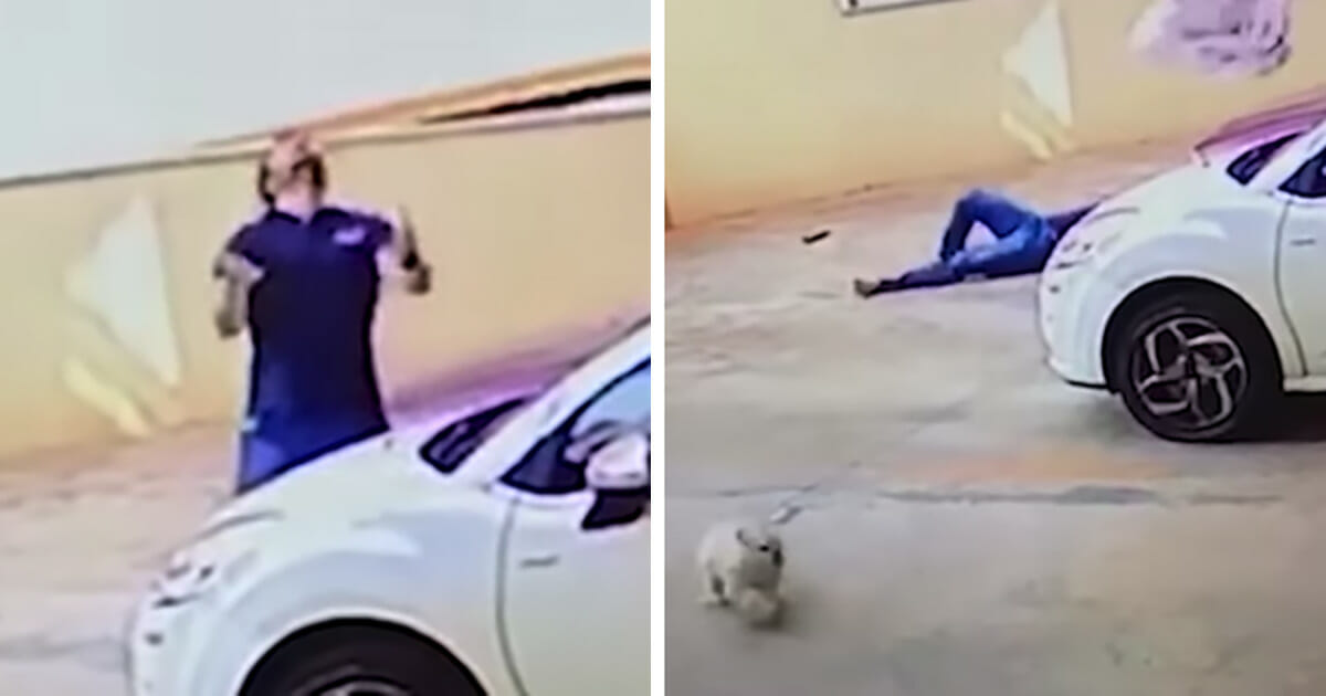 Hunden faller 30 meter från höghus mitt i stan – då fångar kameran mannens blixtsnabba agerande