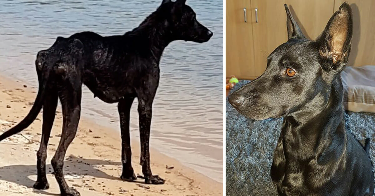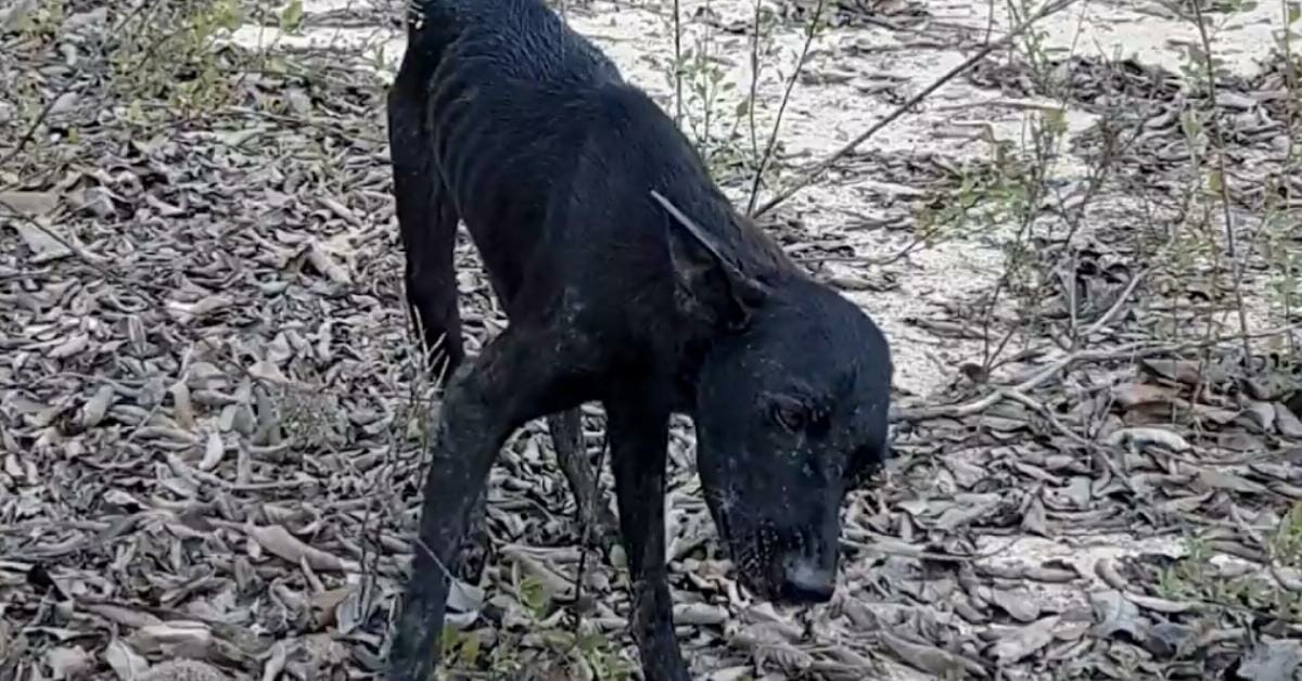 På avstånd upptäckte David ett svart djur som vandrade längs strandkanten. När David kom närmre insåg han snabbt att det inte var frågan om en vildsint köttätare – utan om en stackars fyrbent hund på jakt efter mat.