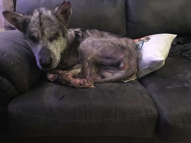 ”Han var utmärglad, hade ingen päls, var täckt av sår och hade knäckta och brutna tänder. Han var otroligt svag och hade en skarp lukt, som kom från hans hemska hudinfektioner. I princip allt var fel med den här stackars killen!”