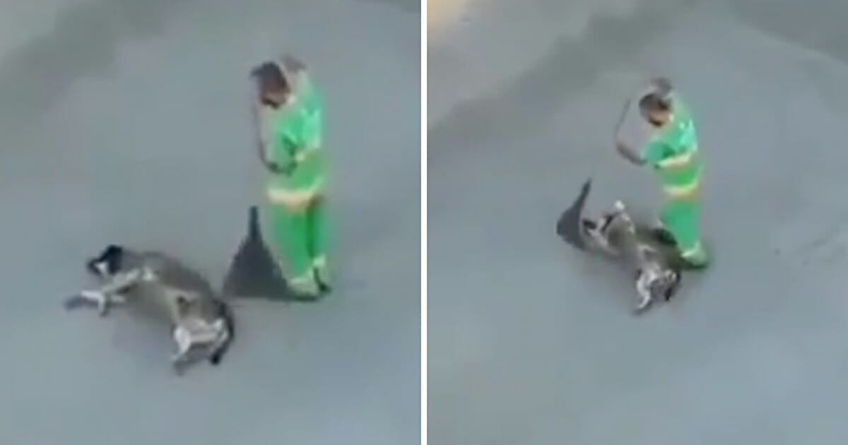 Kameran fångar vad mannen gör med den hemlösa hunden – nu sprids bilderna som en löpeld på nätet