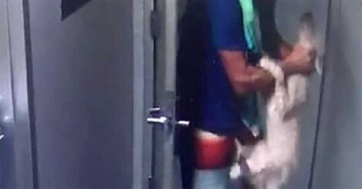 – Jag hörde hunden skrika och när jag tittade på kameran såg jag honom slå hunden, säger en kollega till mannen, enligt Daily Mail.