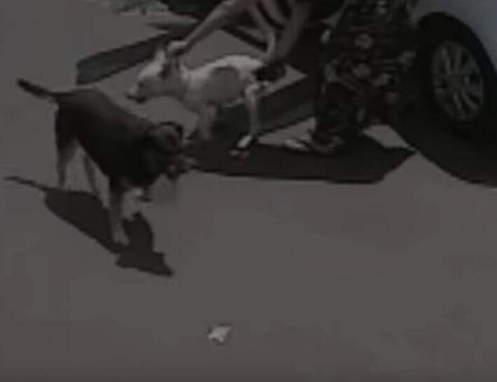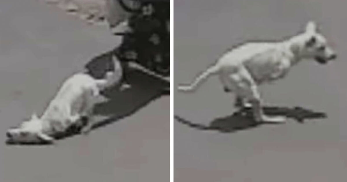 Kvinnan kliver ur bilen med sina två hundar – och lämnar den ena kvar. Hon knuffar hunden så att han ramlar på sitt lilla huvud ner i den hårda marken. Sen återvänder hon och den andra hunden i bilen, och åker iväg. Det hela är över på några sekunder – men handlingen får det att koka i blodet på alla djurvänner.