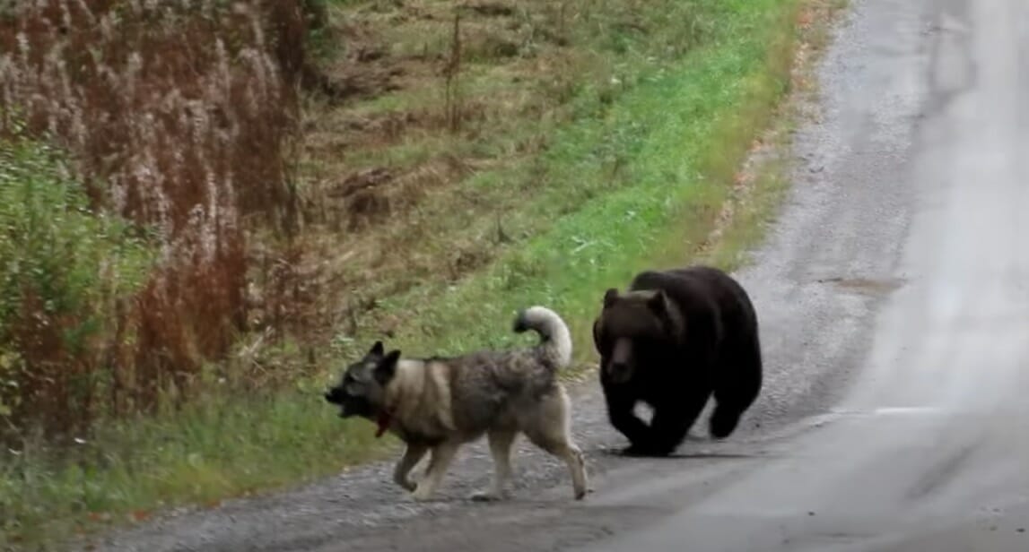 I klippet nedan kan man se hur en hund och en björn leker i de finska skogarna för några år sen: