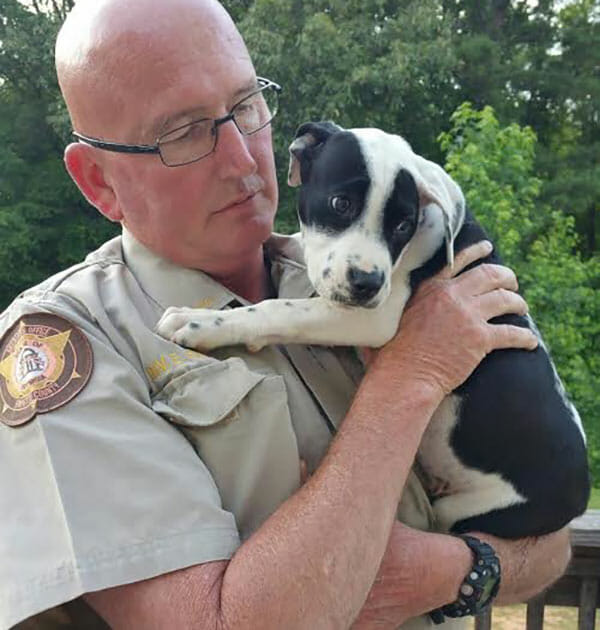 Earl, som är en van hundmänniska, undersökte den lilla valpen noggrant och märkte snart att hon var uttorkad. Hon var långsam och andningen stressad. Hon kämpade för sitt liv.