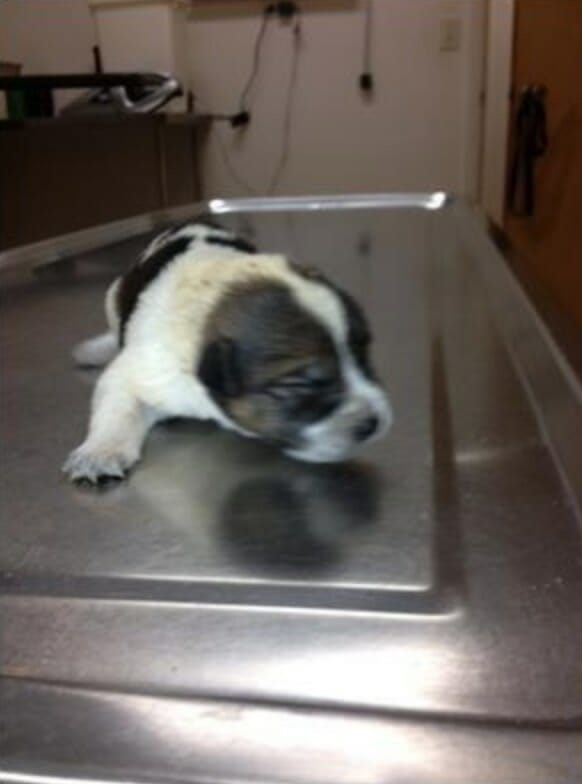 Någon ägare hittades inte men tack och lov fick Tucker komma till ett nytt hem, här syns han när han har kommit till veterinären. Det fastslogs att han bara var en vecka gammal vid tillfället!