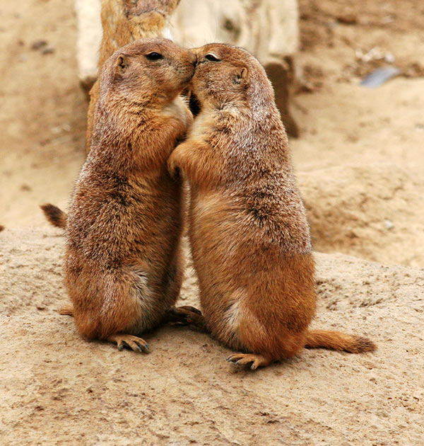De är väldigt familjekära  och ”pussar” varandra – något de inte gör med andra präriehundar utanför familjen.