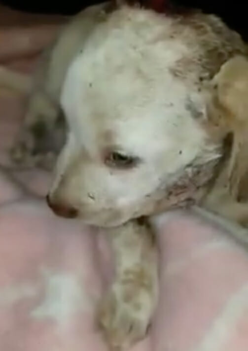 Den lilla hunden hittades illa slagen.