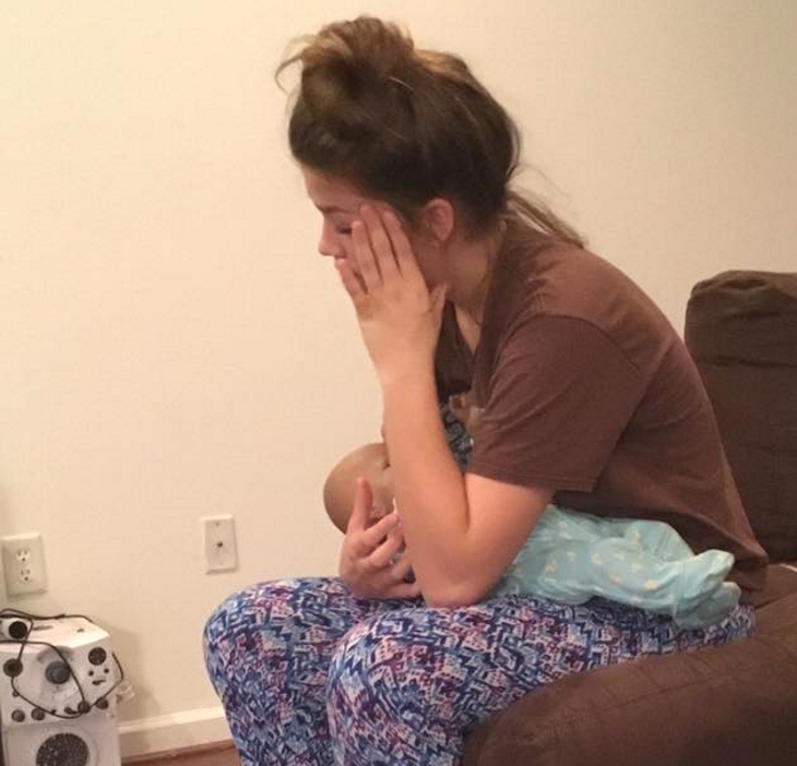”Hon grät riktiga tårar medan hon matade honom med hans flaska. Hon bad mig att hjälpa henne eftersom hon bara ville få lite sömn.?? Ja, nej”, skrev Lauren.