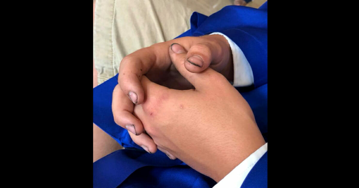 Mamman får syn på sonens händer på skolfotot – bryter ihop åt familjens ”skamliga” hemlighet