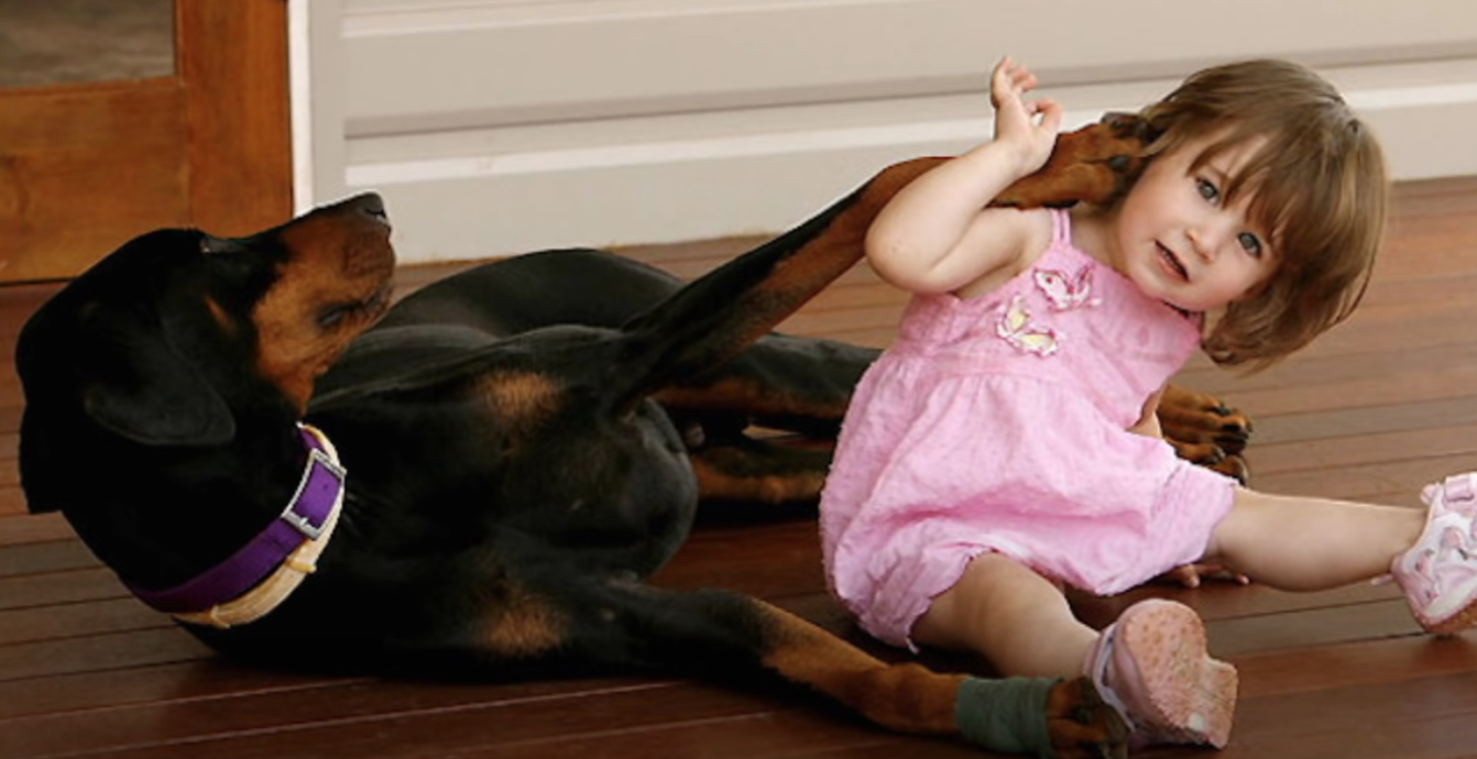 Familjens ny dobermann hugger 1-åringen – när den släpar henne längs gräset förstår de att den är en hjälte