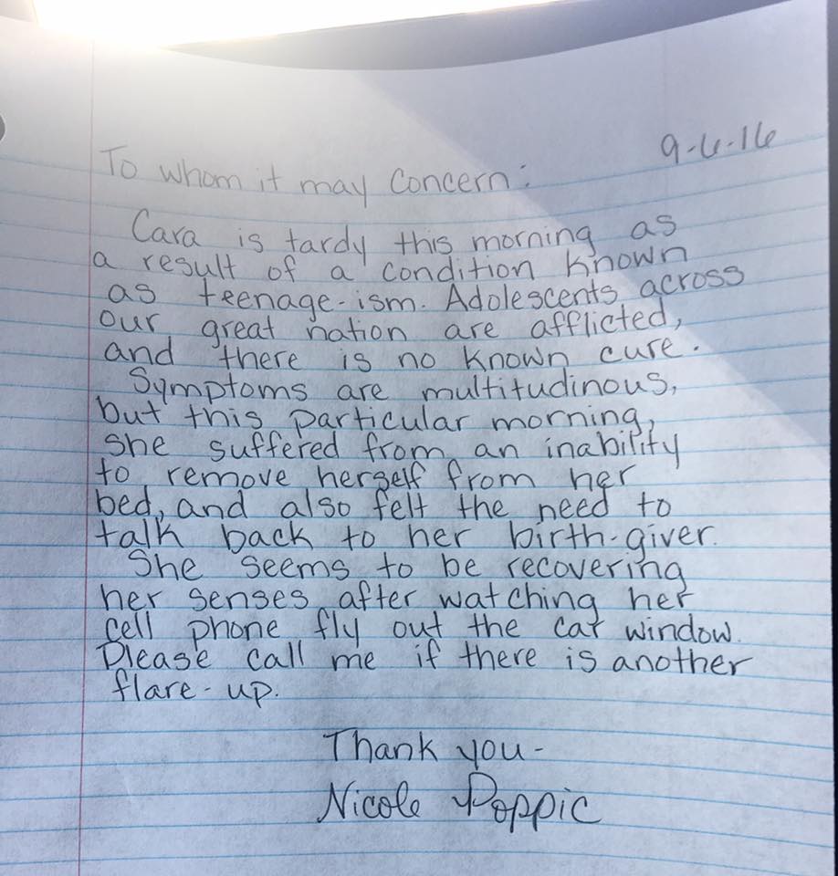 Hon bad sin mamma skriva en ursäkt som Cara kunde ta med sig till skolan, men hon var knappast förberedd på vad mamman skulle skriva…