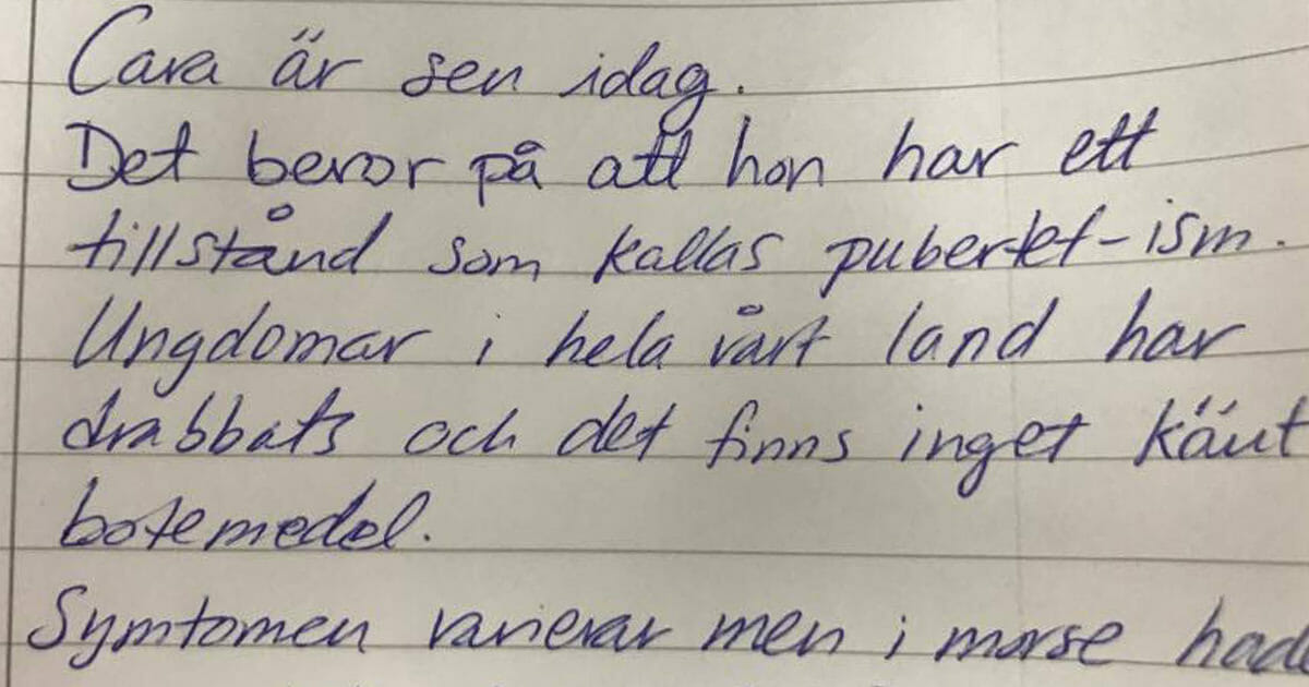 Dottern försover sig – men titta på mammans klockrena brev till läraren