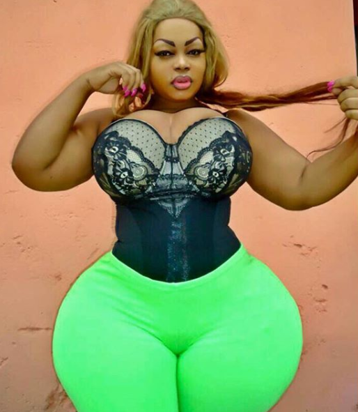 Många med ”större” kroppsdelar brukar gömma dem, men inte Eudoxie, hon visar gärna upp sin stora bakdel.