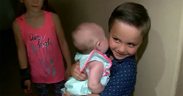 5-åringen hade också virat in sin lillasyster i en filt så hon skulle känna sig varm och trygg.