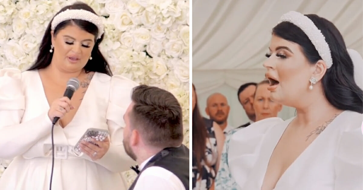 ”En av mina absolut största utmaningar är avklarade”, skrev hon till klippet då hon håller sitt bröllopstal.