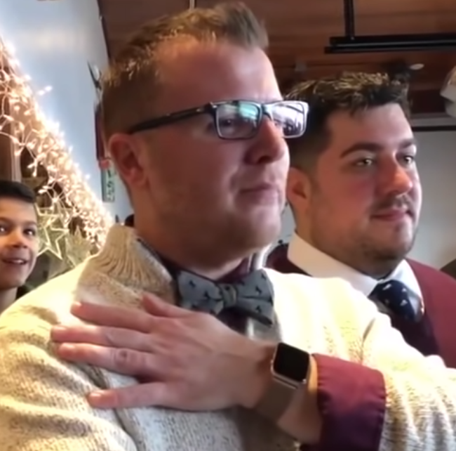 När dörrarna till salen öppnades mitt i allt blev Christopher minst sagt förvirrad, men hans stora kärlek Joe visste exakt vad som skulle hända.