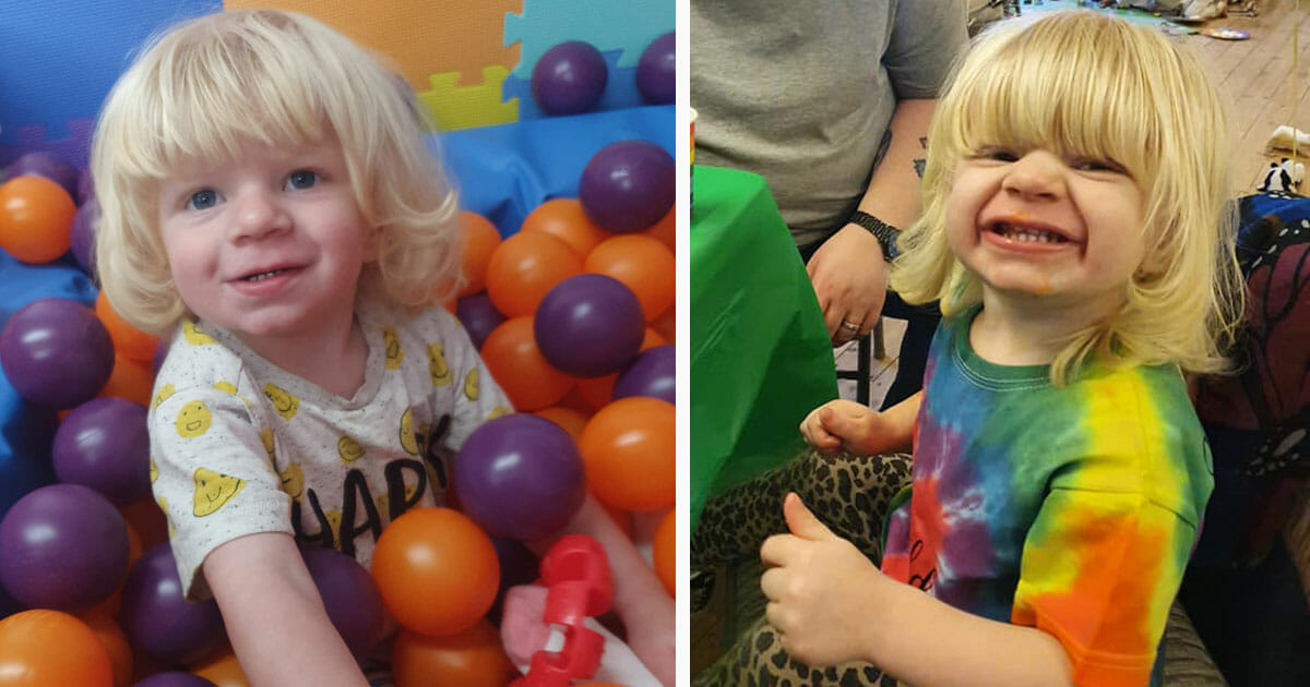 ”Han har så otroligt tjockt hår för ett litet barn. Jag kan till och med fläta toppen av det om han sitter stilla tillräckligt länge”, berättar mamma Amy.