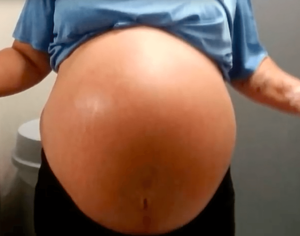 ”Hennes mage svällde och svällde, det var som en stor badboll”, berättar pappan Larry.