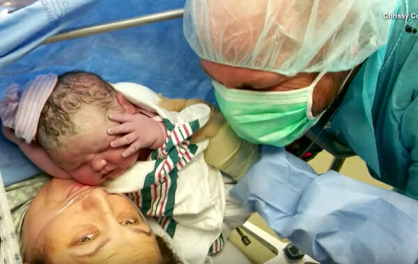 Chrissy födde dottern Carleigh via kejsarsnitt, en vecka tidigt. När barnet väl kom ut hörde hon hur alla jublade inne i rummet. Hon tyckte det var lite konstigt, det hade aldrig hänt henne förut.