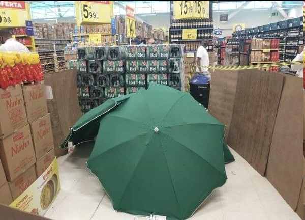 I stället för att stänga affären och låta hans kropp tas bort i lugn och ro placerade kollegor paraplyer och stora lådor runt honom så att butiken skulle kunna hålla öppen, rapporterar brasilianska G1.
