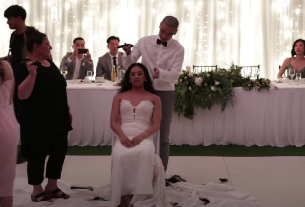 Rakade huvudet under vigseln