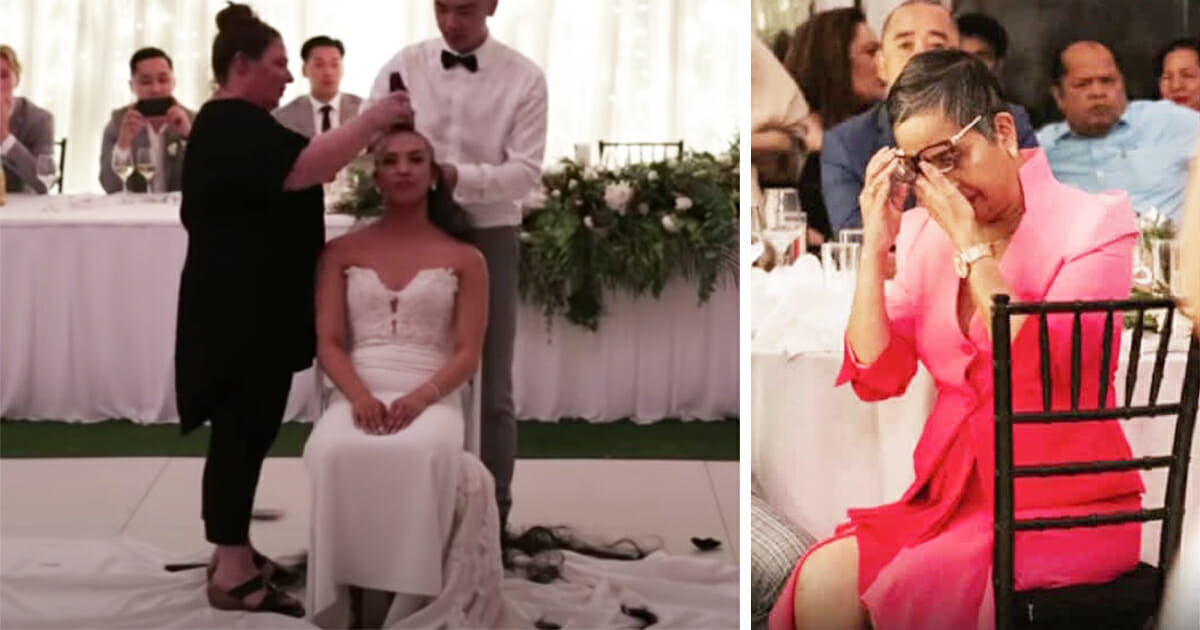 Även svärsonen lät allt hår falla, för att hedra brudens mamma i kampen mot cancer.