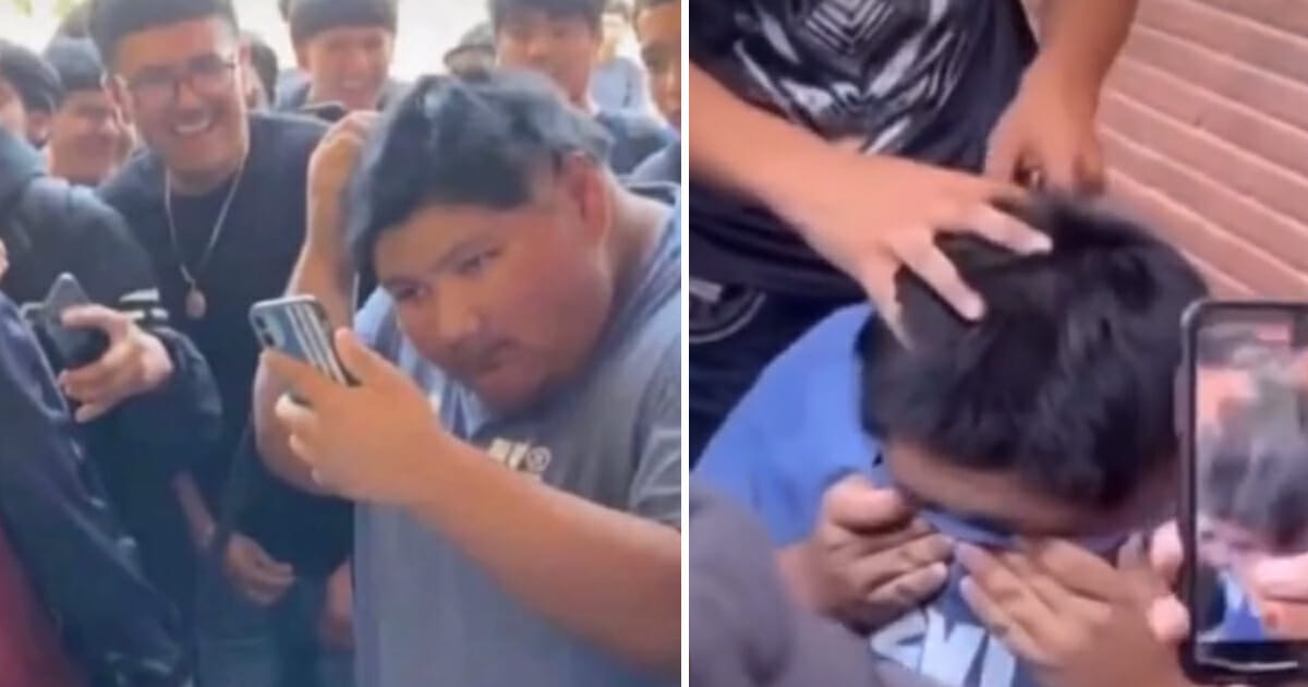Pojken, som heter Javier, blir nämligen utsatt för kränkningar av andra elever. De tvingar honom raka av sig håret samtidigt som han torkar bort tårar som rinner ner för kinderna.