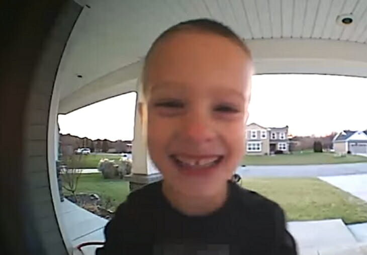 Lilla pojken Gracie från Michigan ville så gärna gå hem och se på barnkanalen, men hans pappa var inte hemma och mamma var kvar hos grannen. Då Gracie inte hade den blekaste aning om hur man fick på kanalen ringde han sin pappa via dörrklockans kamera.