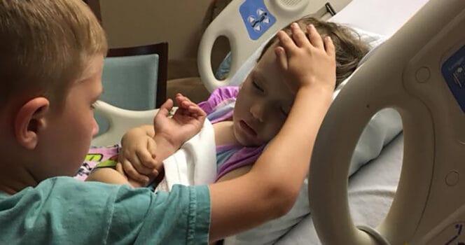 Det ömma ögonblicket när en 6-årig pojke sa godnatt till sin lillasyster för sista gången fångades på bild och krossar hjärtan världen över.