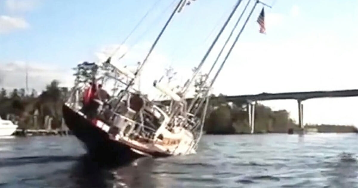 I den här videon syns en relativt stor och segelbåt. Det ser fridfullt ut till en början, men efter bara några sekunder förstår man att allt inte står rätt till.