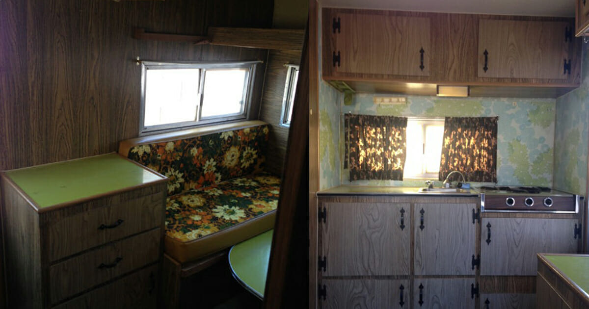 Panelen på husvagnen var vattenskadad, det fanns hål i väggarna och inredningen hade inte bytts ut sedan 1970-talet.