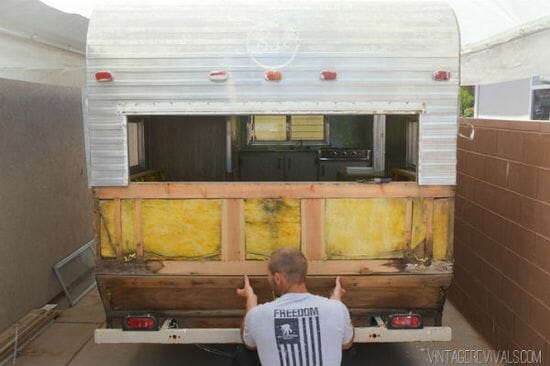 För att kompensera för alla de skåp som togs bort, öppnade Mandi och Court upp släpvagnens trånga badrum och byggde ett pentry.