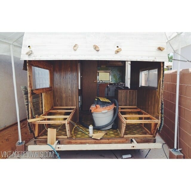 Mandi bestämde sig för att riva ut det mesta som fanns inne i husvagnen. Men det var som sagt ett mycket större projekt än att bara byta klädsel på en antik stol.