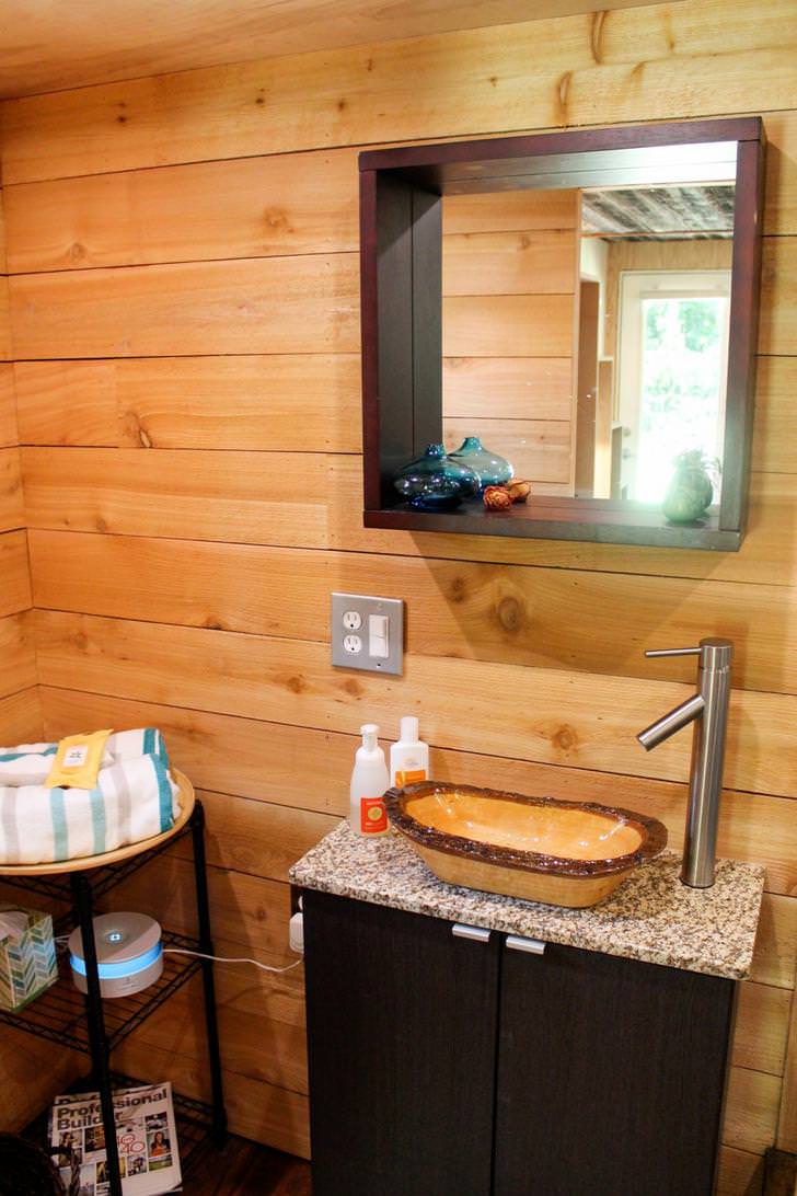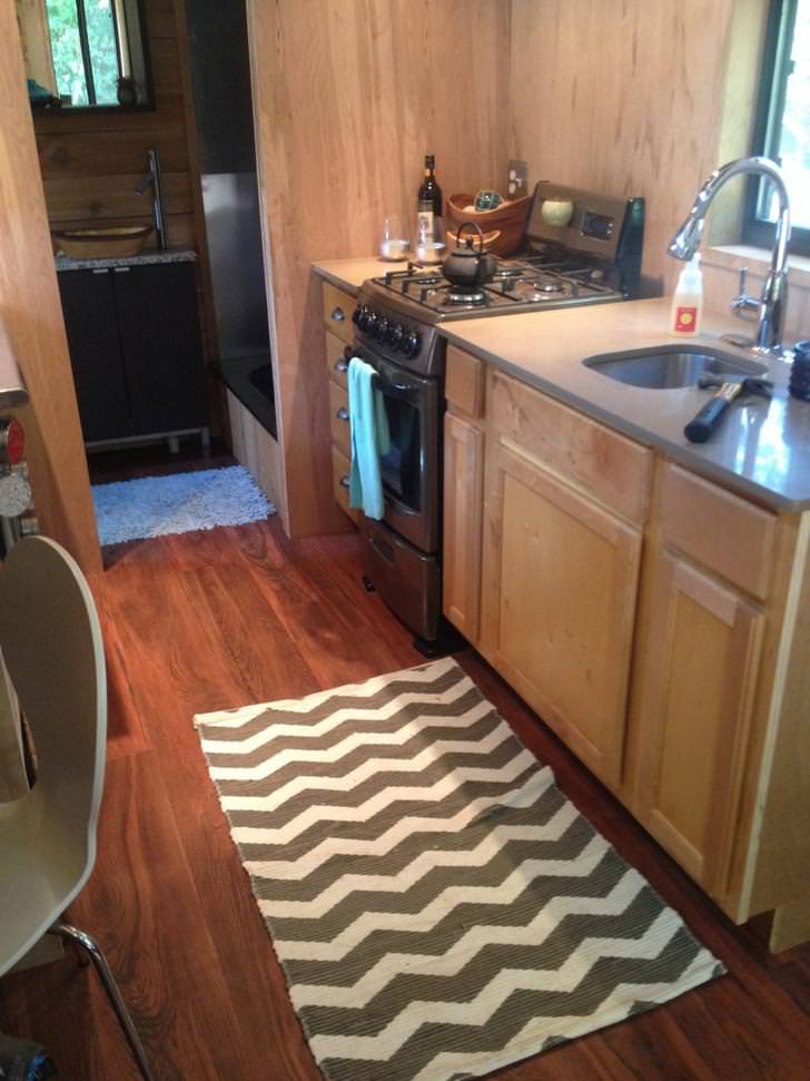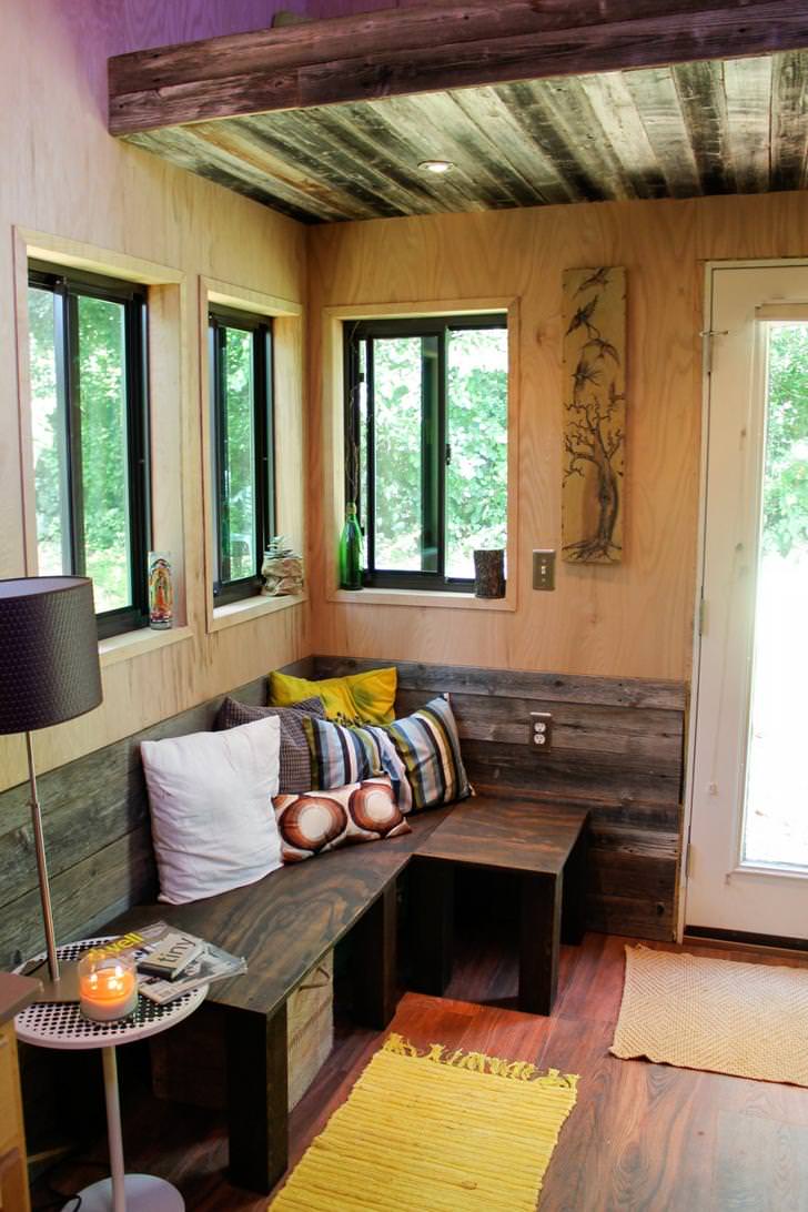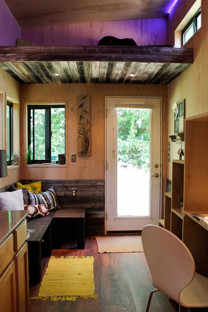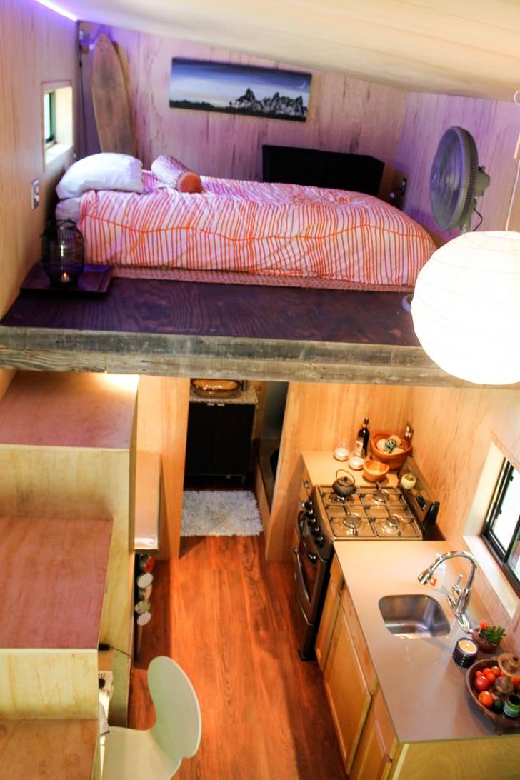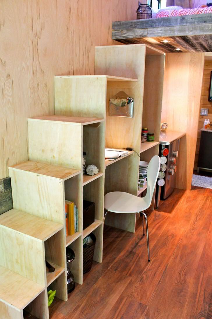 Trähuset som endast är på 14 kvadratmeter är extremt välplanerat. Titta bara på hur väl trappan används för att förvara saker.