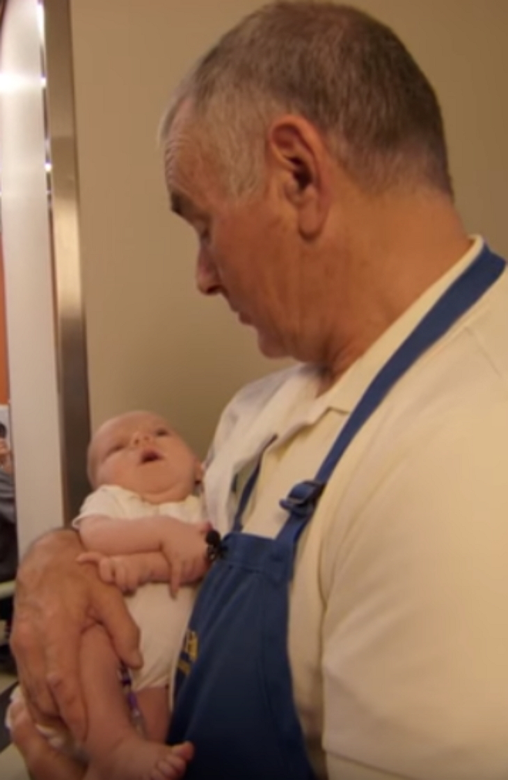 – Han håller dem, matar dem, går runt med dem, lär känna dem och han kan alltid få fram ett leende ut ur dem, säger hon till TODAY Moms.