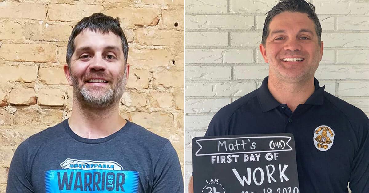 Polisen Matt Cooper sköts i huvudet när han var i tjänst och överlevde mirakulöst. Nu, cirka två år senare, har han återhämtat sig och är tillbaka i arbetet.