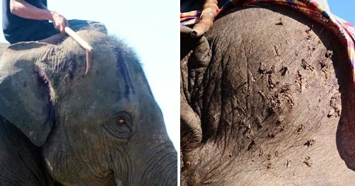 Elefanter tycks användas som ”underhållning” av somliga i turistnäringen, och lider efter stora skärsår, uppger Unilad.